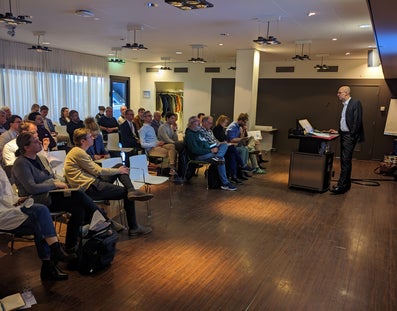 Sprekers waren: dr. Erika Kuijpers, prof. dr. Matthias van Rossum, prof. dr. Stephan Dusil (foto), dr. Rik Hoekstra, dr. Annemieke Romein, drs. Edwin Klijn, drs. Rutger van Koert, Katrien Depuydt, prof. mr. Gijs van Dijck en prof. dr. mr. Hylkje de Jong.