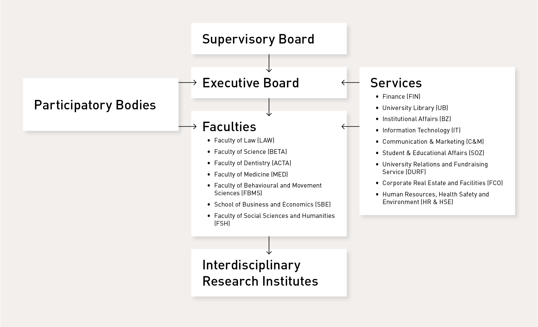 Vrije Universiteit Amsterdam is managed by the Executive Board and is organised in various entities.