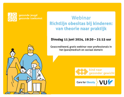 Care for Obesity and JOGG organised a webinar on the guideline on overweight and obesity for children. The speakers were Jaap Seidell (professor of Nutrition and Health), Saskia Bouma (paediatrician), Marjon Bachra (director JOGG) and Dr Bibian van der Voorn (doctor and national project leader Care for Obesity).