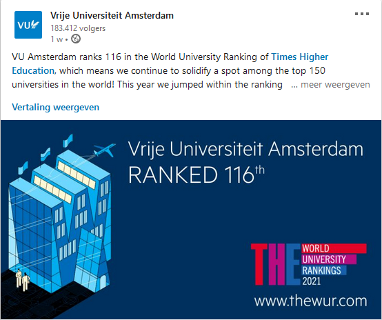 - Naming in content: VU Amsterdam or VU (due to number of characters to be used)
