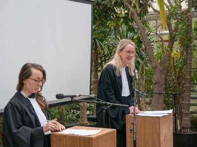 We want to thank VUvereniging, Everaert Immigration Lawyers and the Ministry of Justice and Security for sponsoring this event. And thanks to Amnesty International and the District Court of Amsterdam for allowing us to use their building/courtroom.