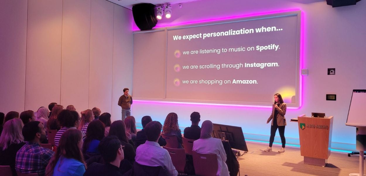 During the "Life After Graduation" session, the Advisory Board and four alumni engaged in discussions with students on the transition from university to the professional world. These alumni, representing diverse sectors where DBI graduates excel, include Mike van Dijk, Project manager at Dutch Ministry of Infrastructure & Water (graduated 2013), Laura Braun, Global Product Owner Data & Analytics at Unilever (graduated 2019), Tessa Coenen, Product Manager at Vanderlande Warehousing Solutions (graduated 2021) and Karim Ridanovic , Cybersecurity Consulting Analyst at Accenture (graduated 2022). Beyond addressing the common challenges faced during this transition, the themes of the discussion included the future of 'digital' as a distinctive label, ethical dilemmas arising from technological advancements, and the importance of lifelong learning to stay relevant to the rapidly changing demands.