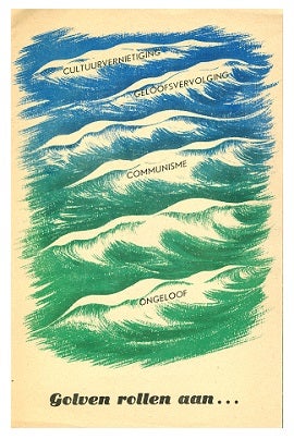 But there are more brochures with resounding titles. For example, 'Waves roll on...' where the words 'cultural destruction', 'religious persecution', 'communism' and 'disbelief' are drawn on the waves. Or 'For the preservation of our university' with the first chapter: 'Why it must and why it must so' on the looming budget deficit for 1947 and 'A talk and a picture' following an article by Prof J. Waterink.