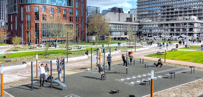The second step is at least 30 minutes of moderate-intensity exercise daily, such as walking or biking. On campus, this is made as easy as possible: with walking trails, sports facilities such as a volleyball court and calisthenics park, and low-threshold activities such as fifteen-minute sessions of Qi Gong or salsa on Tuesdays and Thursdays on the Campus Square and standing yoga on Wednesdays in the OZW building. "You don't have to change clothes or go to the gym," Spekreijse says. "With VU in Motion we try to make this as easy as possible in your daily routine."