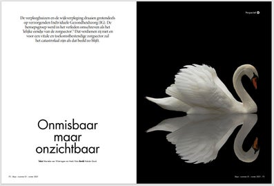 Hoe maakt je deze belangrijke mensen zichtbaar en laat je zien wat hun werk inhoudt? Je kunt daar een wetenschappelijk artikel over schrijven. Maar Van Wieringen en Van Erp willen ze op een andere manier in beeld brengen. Letterlijk, door ze tijdens hun werk te laten fotograferen. Daartoe volgt fotograaf John van Hamond een aantal verzorgenden IG tijdens hun werkdag. ‘Als je iets invoelbaar wilt maken, moet je het laten zien’, zegt Van Erp. ‘Bij een foto waarop iemand wordt geholpen onder de douche te stappen, hoef je geen uitleg meer te geven. Niemand zal daarbij denken dat dit op anderhalve meter afstand kan.’
