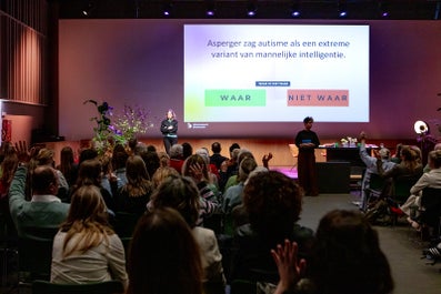 Vrouwelijke patiënten kunnen ook zelf stappen ondernemen, zegt Merel de Heer-Koster, de enige arts-onderzoeker op het podium. Ze vertelt dat ze aan informatie werkt waarmee vrouwen met meer kennis de spreekkamer kunnen binnenstappen. ‘Zodat je weet wat er anders is aan je lijf, en wat de juiste vraag is om bij de dokter te stellen, zodat je klachten niet weggezet worden.’
