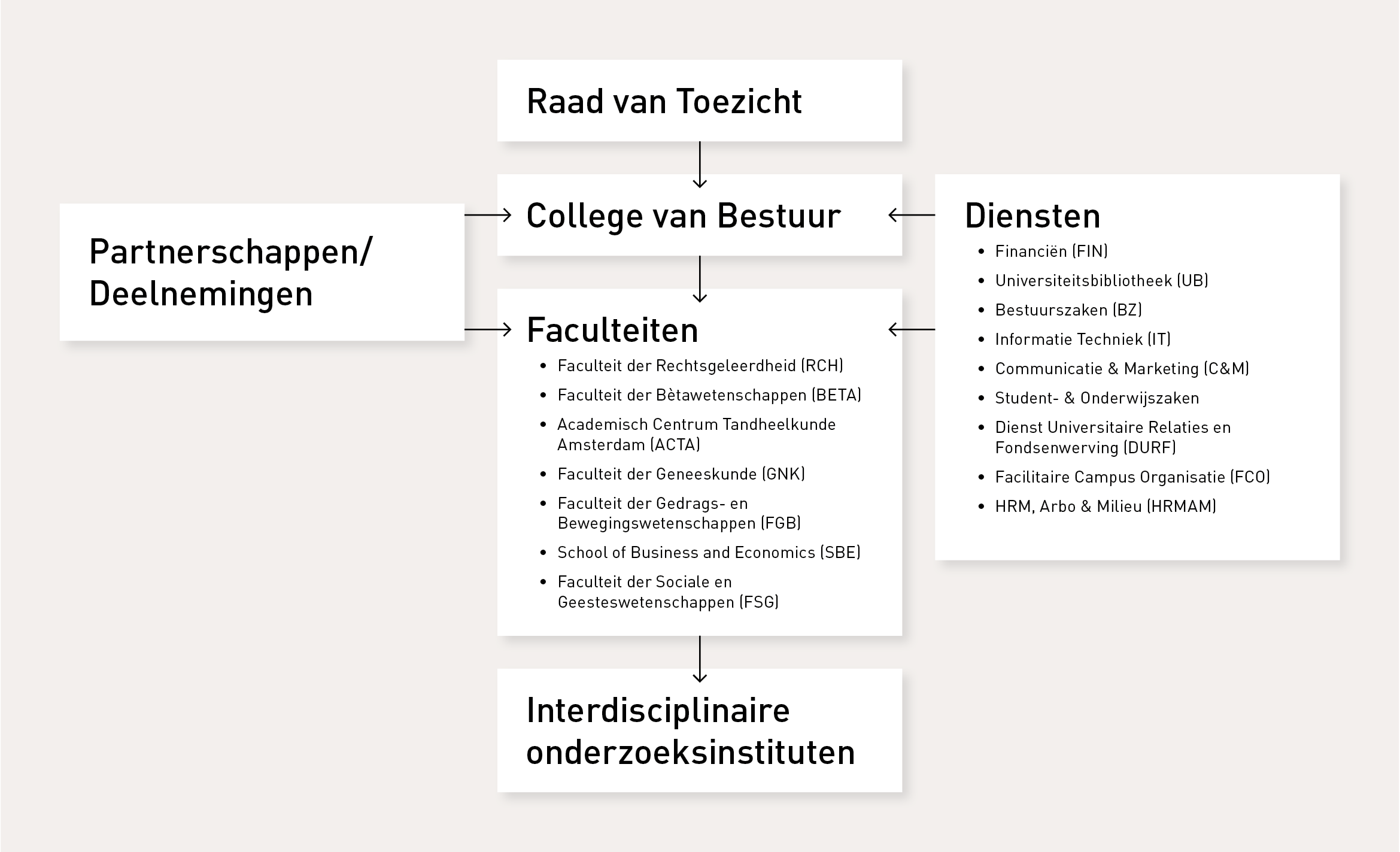 Bekijk ook het organogram van de organisatie en het bestuur van de VU.
