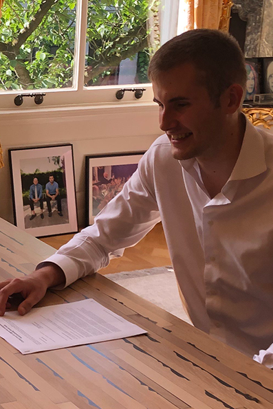 “Op een normale schooldag ga ik naar alle werkcolleges en soms een hoorcollege. Direct daarna ga ik naar de PPE studieruimte om te lezen en het boek te schrijven. Dit ritme werkt wel goed voor mij. Bovendien overlapt veel van het denken in het boek met PPE, wat ook erg helpt.”