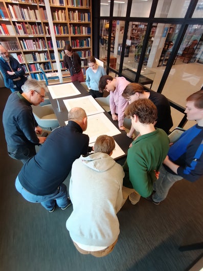 Binnen het vak Het geheim van de kaarten aan de UvA krijgen studenten te maken met een fysieke set kaarten uit de kaartencollectie van de VU universiteitsbibliotheek. Over de mysterieuze “van Essen-set” – zoals de kaartencollectie is gedoopt – is weinig bekend. Tijdens een startbijeenkomst krijgen studenten uitgebreid de tijd om de historische kaarten te bestuderen. Vooraf deelt conservator Jeroen Bos van de Bijzondere Collecties bewust zo min mogelijk informatie over de kaarten.
